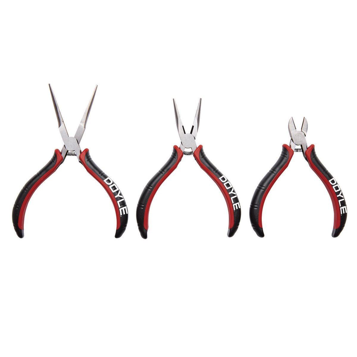 Doyle™ precision pliers handle your most delicate work. Constructed from high strength steel and specially treated to resist rust, these pliers are designed to last. The set includes 4-1/2 in. diagonal cutters, 5-3/8 in. long nose pliers and 5-3/4 in. needle nose pliers. Each pair of pliers features vinyl handle grips for comfort and less user fatigue.