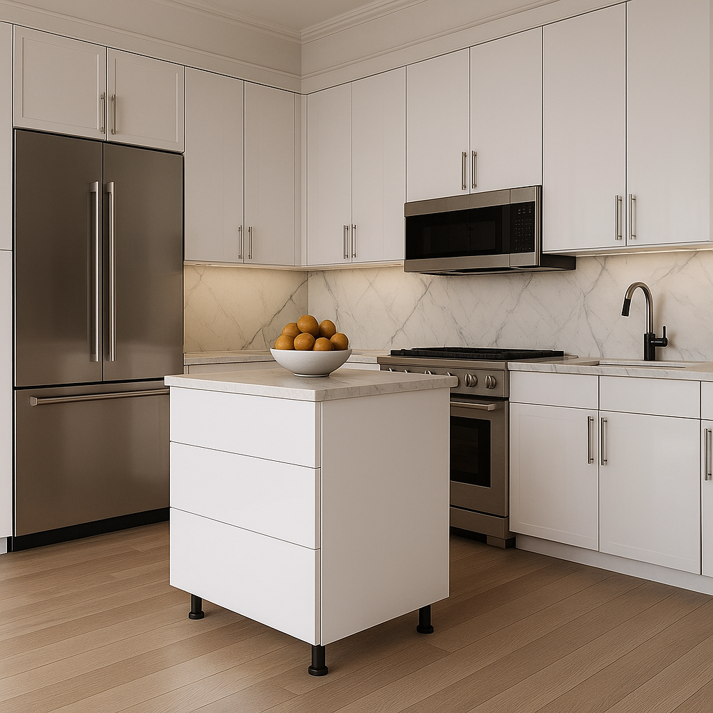 The Cambridge Radiance kitchen cabinet combines modern design with practical functionality. Featuring a frameless construction and a high-gloss white finish, it offers a sleek and contemporary look. Ready to assemble, it includes soft-close drawers and adjustable feet for easy installation.