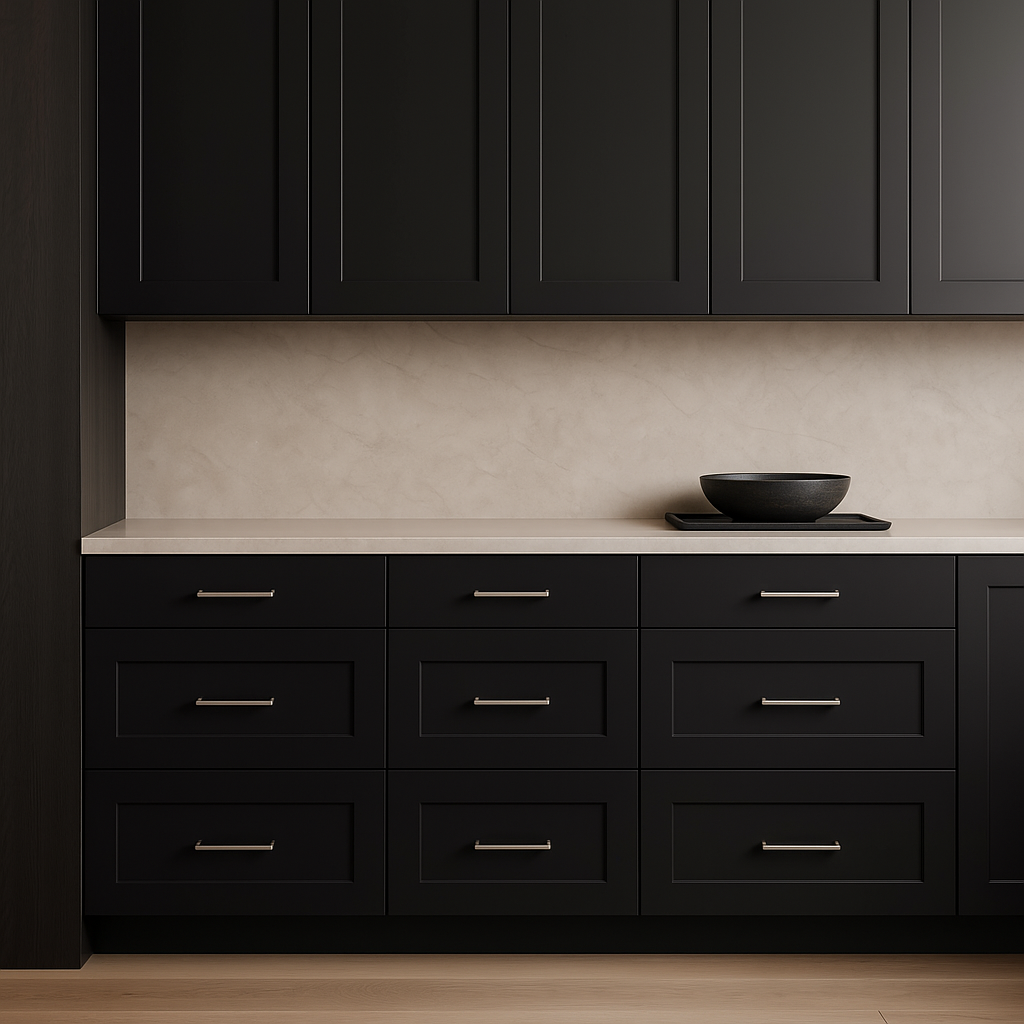 The Hampton Bay Avondale Shaker Drawer Base Cabinet combines modern style with practical functionality. Featuring a durable plywood construction and a premium painted finish in Raven Black, this cabinet offers soft-close drawers and full-extension glides for easy access and storage.