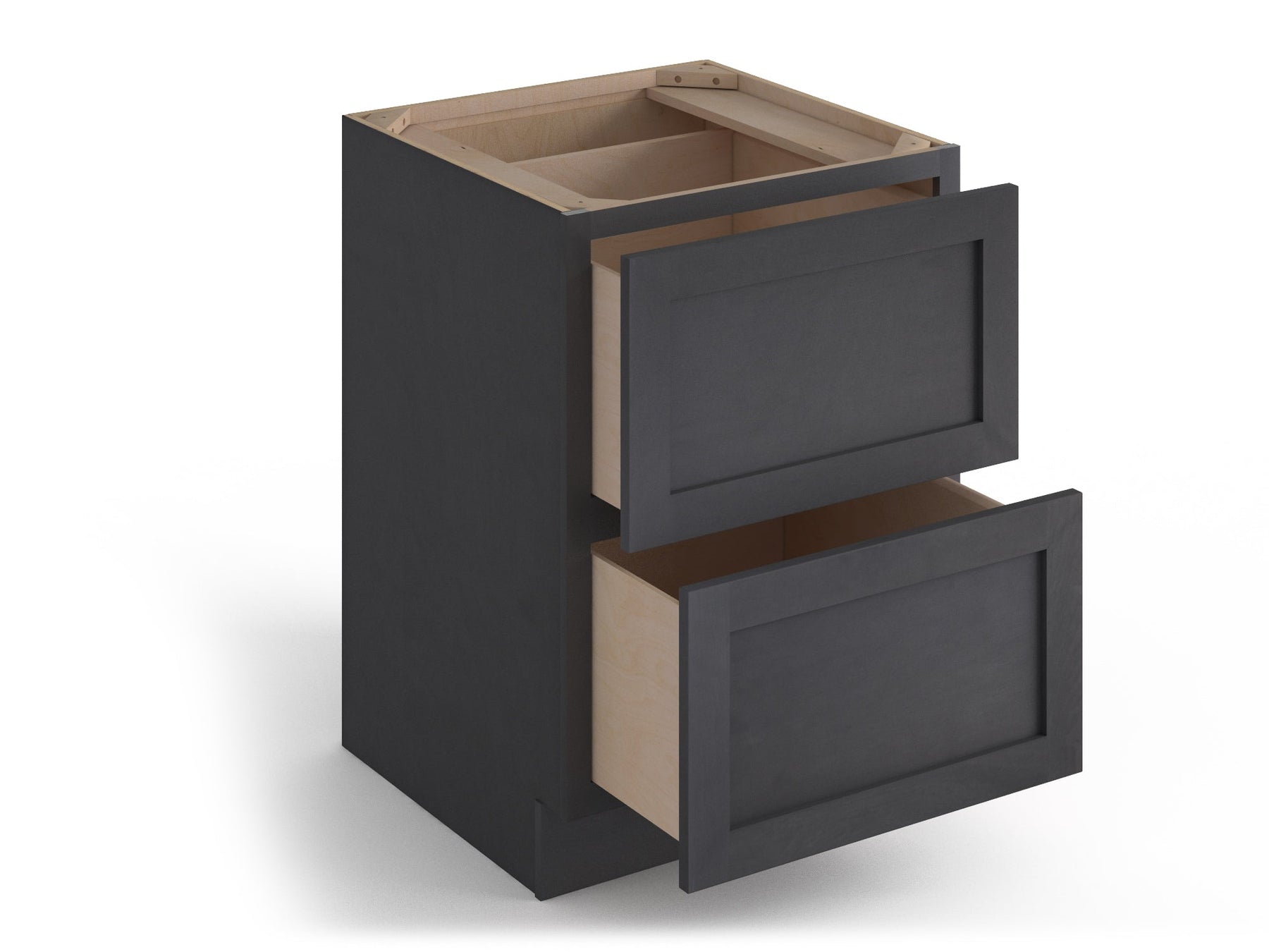The Valleywood Cabinetry 2-Drawer Base Cabinet offers a sleek and functional solution for kitchens and storage rooms. Crafted from durable birch wood and sporting a sophisticated gray finish, this cabinet provides ample storage with a touch of elegance. Its ready-to-assemble construction ensures a straightforward setup, perfect for pros and DIY enthusiasts alike.