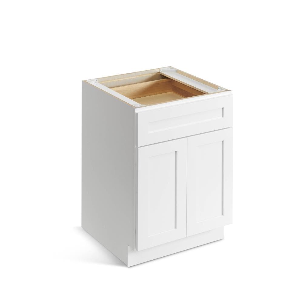 Transform your kitchen or bathroom with the Valleywood Pure White Shaker Style Base Cabinet, designed for ultimate style and function. Expertly crafted from birch, this ready-to-assemble cabinet features a durable plywood construction and a modern flat panel design, ideal for contemporary or classic interiors.