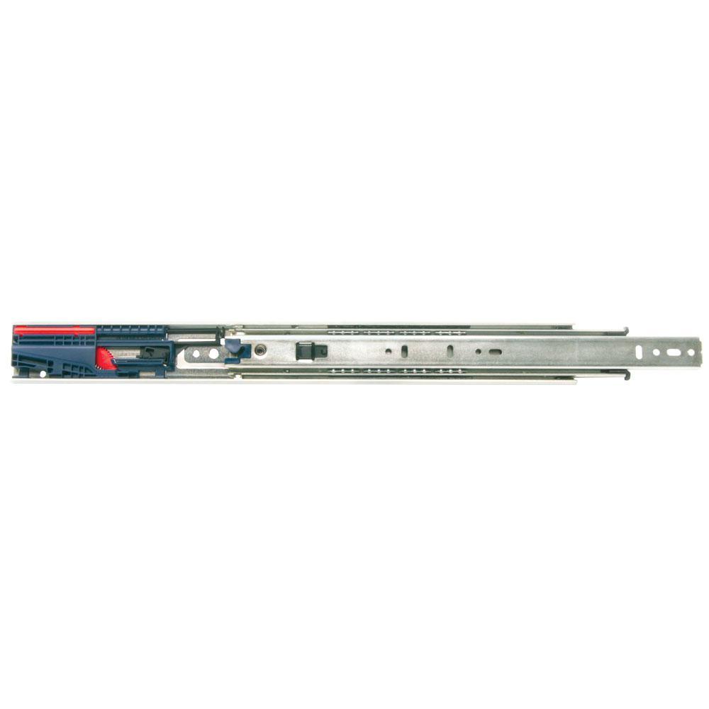 The 22 in. 8450FMP Series Anochrome Soft-Close Drawer Slide, from Knape & Vogt, is a side-mount slide with a class load rating of 100 lbs. This Knape & Vogt Force Management Series slide establishes a new standard in Soft-Close technology by delivering effortless drawer opening and superior performance in dampening action, which eliminates drawer slamming. Made of durable steel with an anochrome finish, the 8450FMP slide has a non-handed design with lever disconnect for easy drawer removal, and traditional 32 mm hole patterns that support industry standards. Recommended for drawers up to 24 in. W. Includes 1 pair of drawer slides and hardware.