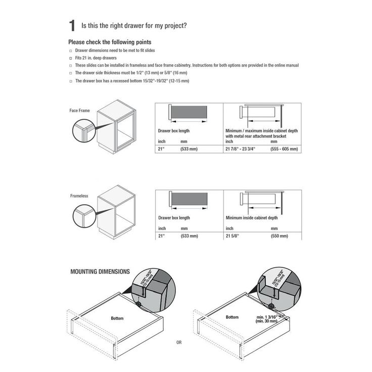 • For 1/2 (13 mm) or 5/8 (16 mm) drawer side thickness