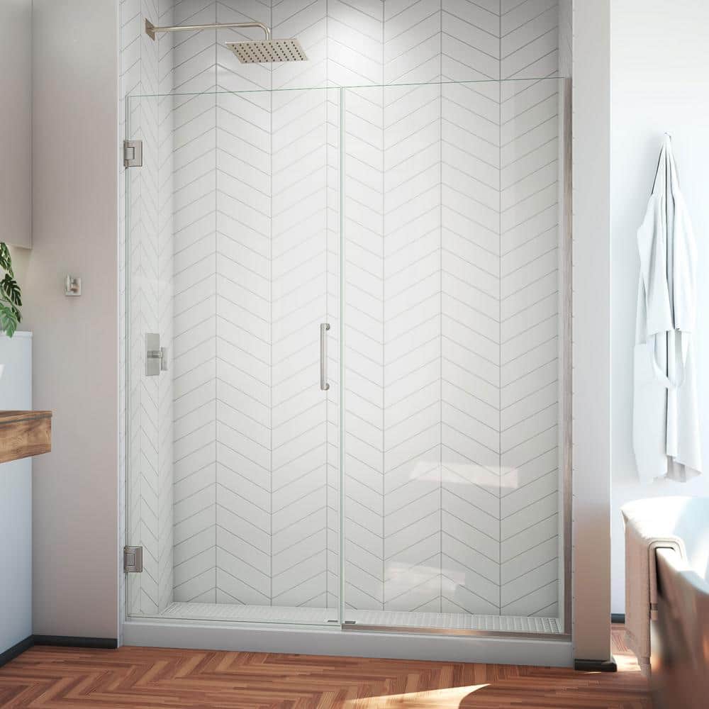 DreamLine Unidoor Plus 58 to 58.5 in. W x 72 in. H Frameless Hinged Shower Door, Brushed Nickel