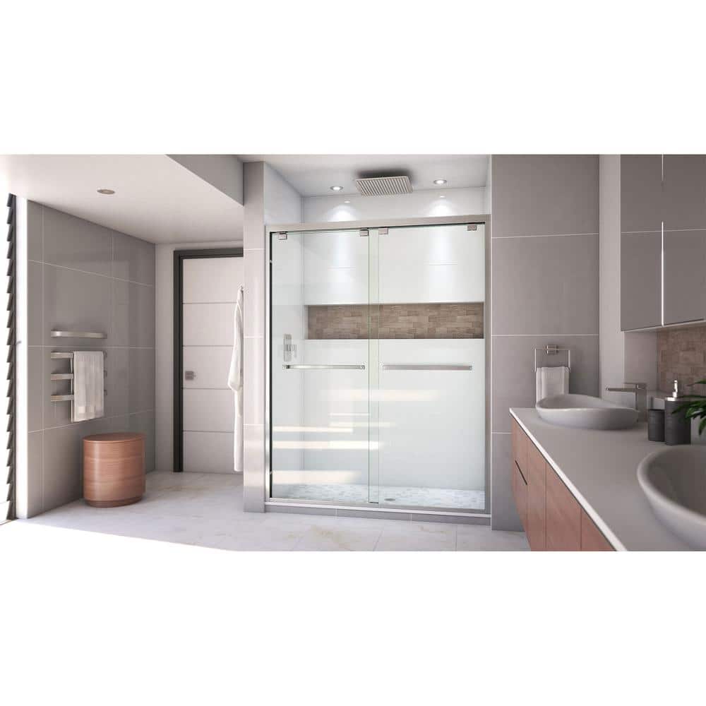 DreamLine Encore 56 to 60 in. W x 76 in. H Semi-Frameless Sliding Shower Door, Brushed Nickel