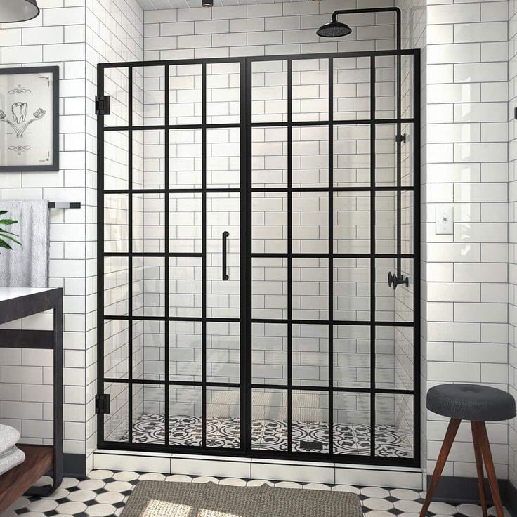 This shower door turns the bath into a gallery—its bold Toulon grid etches a refined rhythm across luminous glass. The satin black finish frames the room with tailored precision, while the frameless silhouette keeps the architecture airy and effortless. Pair it with veined marble and matte black fixtures to heighten the drama. It’s a defining piece for a bathroom that lives luxuriously every day.