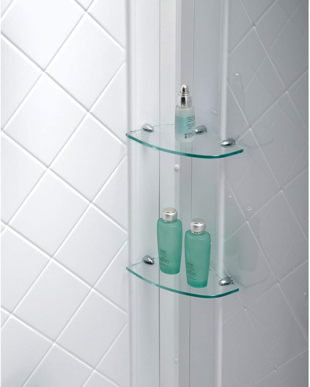 This compact shower kit brings a refined, tailored silhouette to small baths, with diamond-pattern walls that add quiet texture and light play. The low-profile base feels modern and seamless while the glass corner shelves lend a floating elegance. Style it with matte black fixtures or polished chrome for a fresh, gallery-like look. Consider it an effortless foundation for luxurious daily rituals.