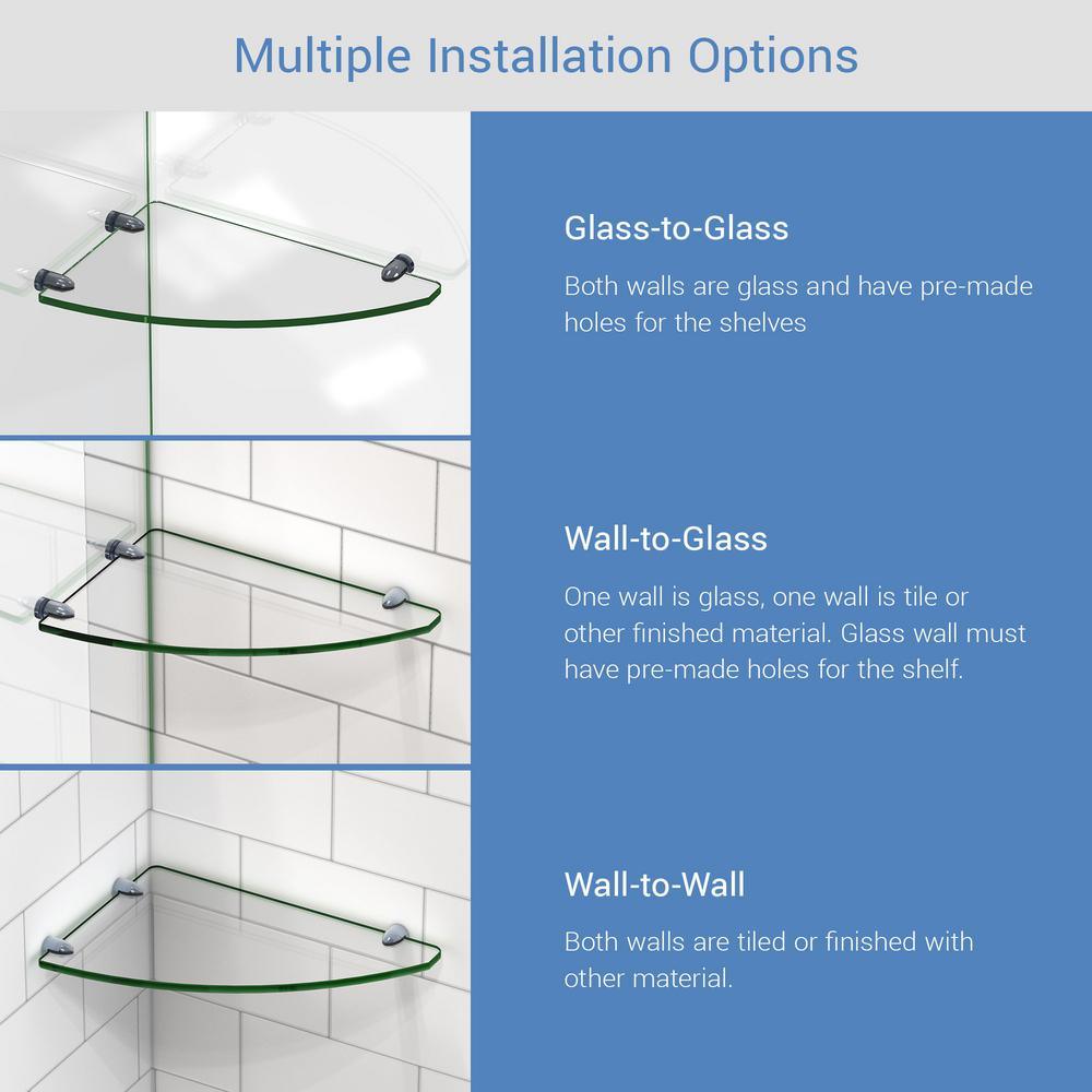 • Versatile Installation: Mounts to glass (pre-drilled), tile, or drywall with included hardware