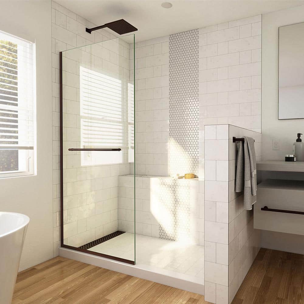 Transform your bathroom into a sanctuary of luxury with the DreamLine Linea Frameless Shower Screen. Its seamless glass panel design dissolves boundaries, enveloping your space in light and openness while the oil-rubbed bronze finish exudes timeless sophistication. Style it alongside rich, earth-toned tiles for a harmonious blend or as a striking statement piece against marble surfaces. This shower screen is not just a fixture; it embodies elegance and functionality as staples of elevated living.