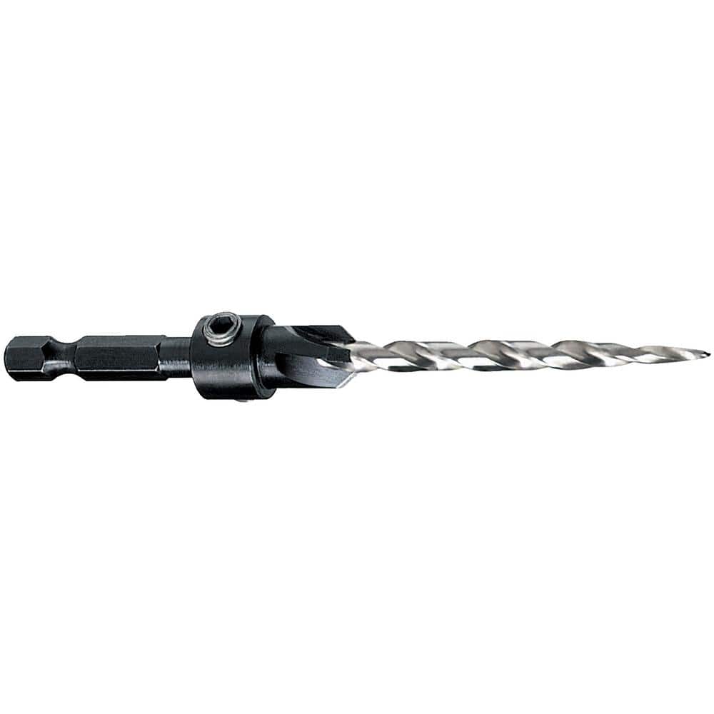 A: It is a #6 countersink with a 9/64 in. tapered pilot bit, adjustable for various screw lengths.