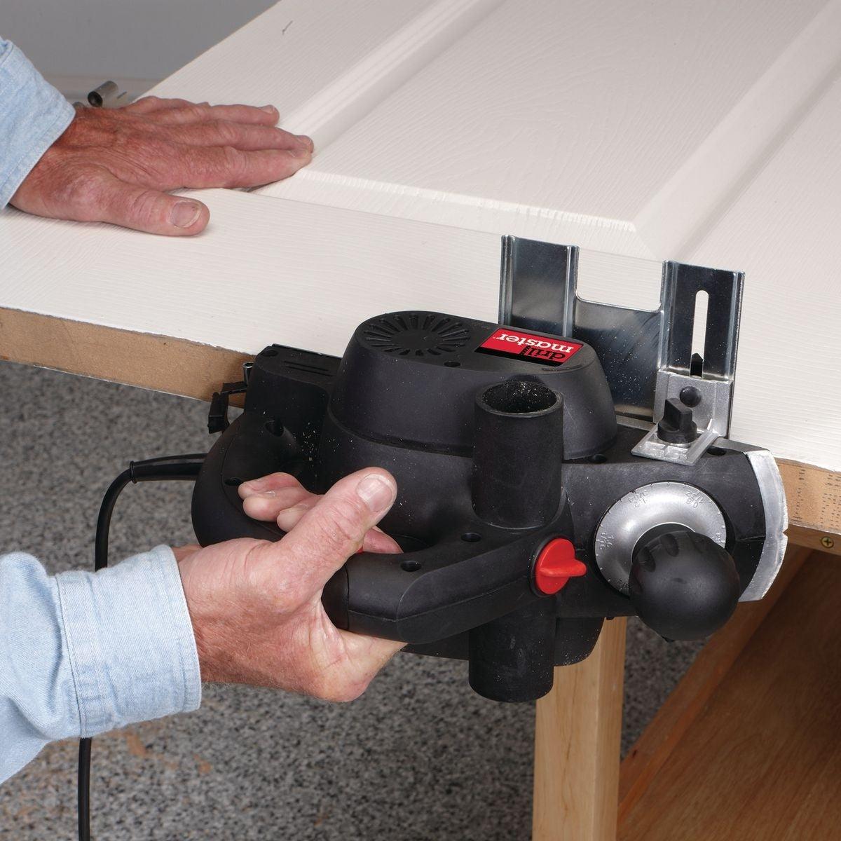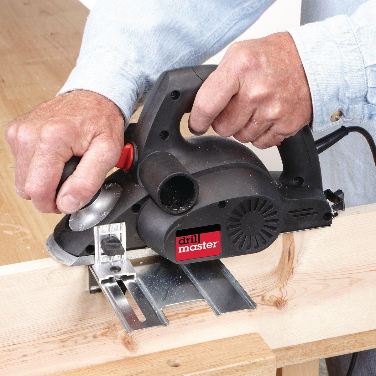 This electric planer shaves and smooths wood cleanly and precisely. Well-balanced design with a durable ball bearing motor for long lasting performance.