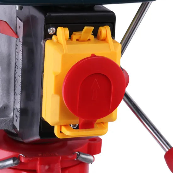 A: The drill press operates on a 220V power supply, making it compatible with standard outlets.