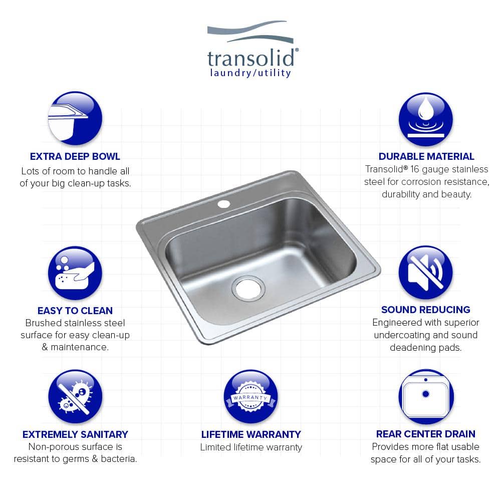 Transolid Meridian 25 in. x 22 in. Stainless Steel Drop-In Laundry Utility Sink Kit