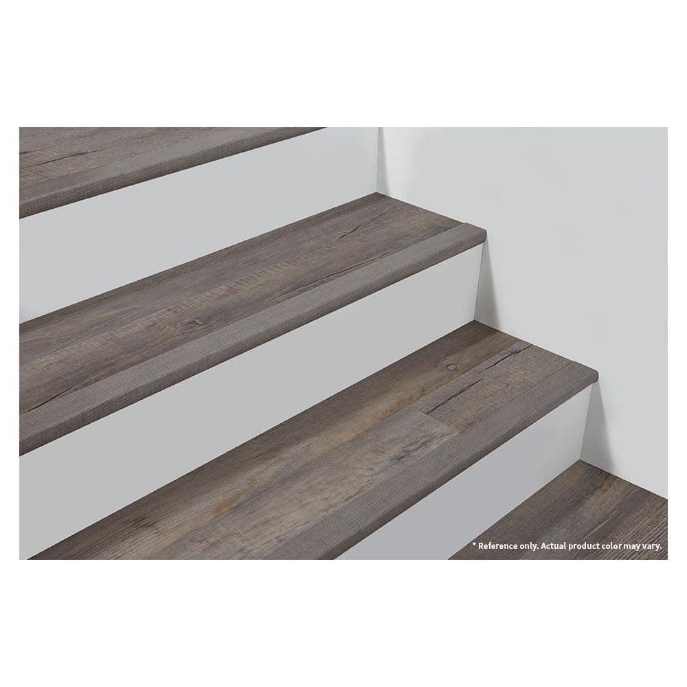 Elevate your staircase design with the DuraDecor Broadway Blonde Stair Nose Molding. This durable vinyl piece perfectly complements DuraDecor flooring, offering a seamless transition and extra protection for your stairs. With easy DIY installation and high wear resistance, it's the stylish and functional finishing touch your floors deserve.