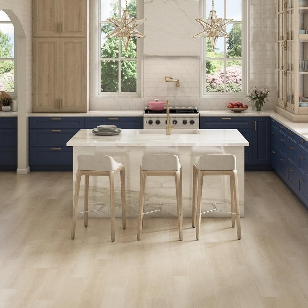Liz Marie's Sand Tropez flooring exudes an effortless sophistication, transforming any room into a serene sanctuary. Like sunlit sands, the golden undertones enliven spaces, imbuing them with warmth. Elevate your interiors by pairing this flooring with plush area rugs and natural fibers for an organic, modern look. This flooring isn't just a foundation; it's a gateway to an exceptional lifestyle, where style and comfort coexist.