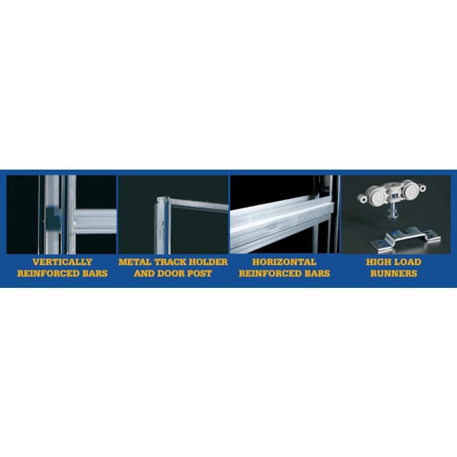 Eclisse 30-in. x 96-in. steel single pocket door frame kit Patented technology makes installation and removal easy; features a removable track so you never have to break drywall again to remove the track Use any door you would like: you're not limited to a specific door design; 1-3/8-in, 1-3/4-in wood, 1-in aluminum or 3/8-in Frameless glass Frame kit includes: galvanized steel frame (assembly required), patented removable track, floor guide, maintenance free track and runners, two adjustable door stops, door mounting kit, all required assembly screws and drywall screws Holds a door up to 220 pounds Frames: the most quality pocket door system on the market; frames are all galvanized steel and no longer use wood components Easy installation and maintenance