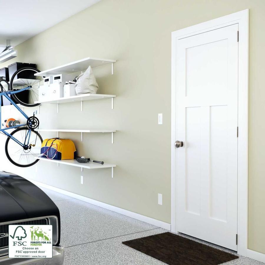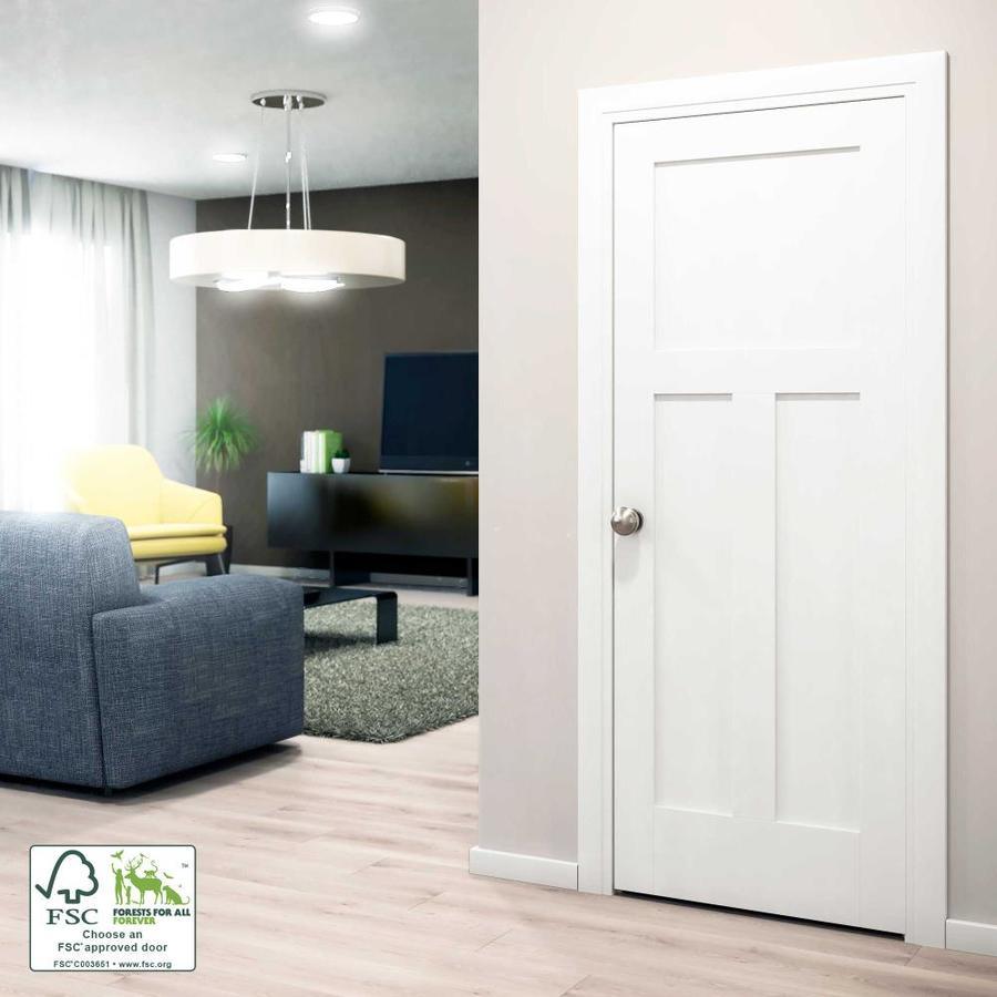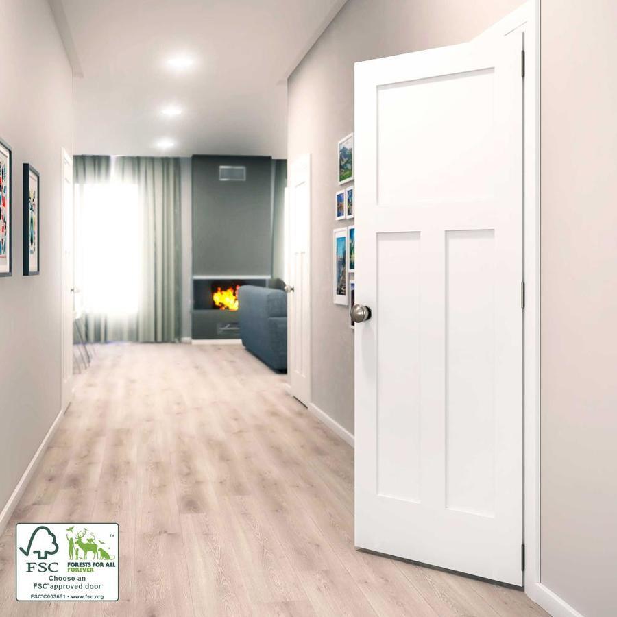 EightDoors Shaker 28-in x 80-in Primed White 3-Panel Square Solid Core Primed Pine MDF Slab Door