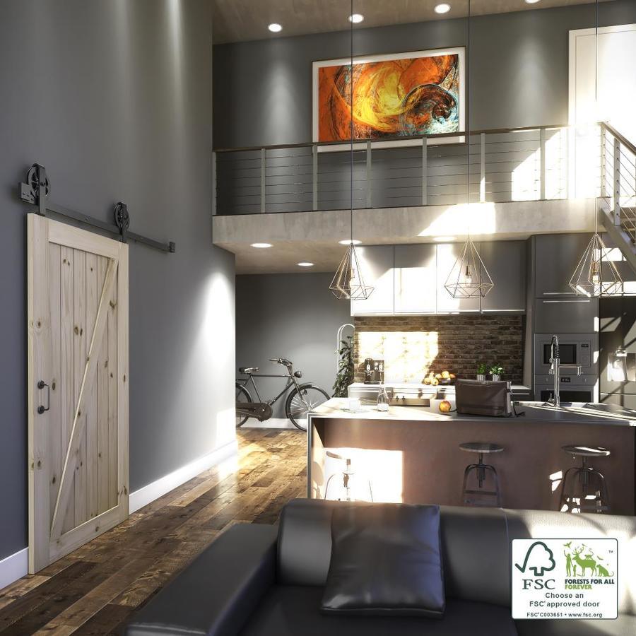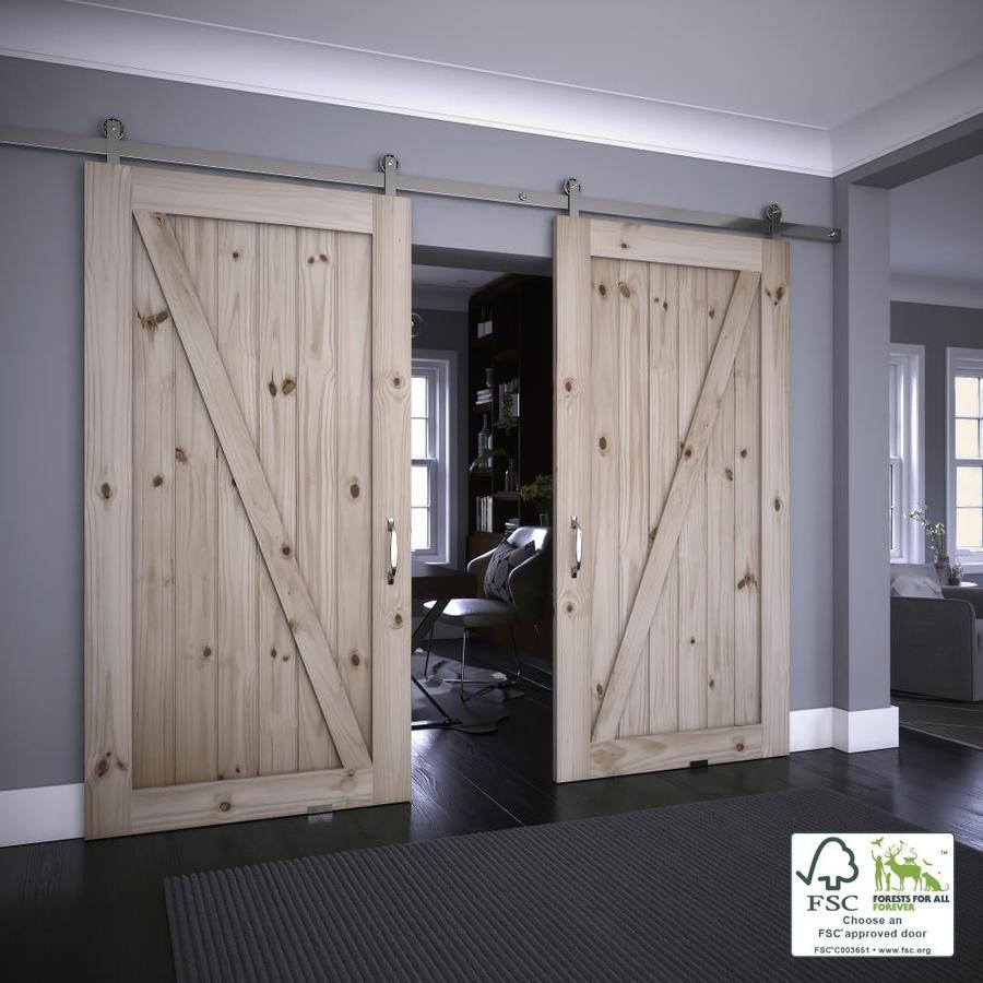 EightDoors 42-in x 84-in Knotty Pine Z-frame Unfinished Knotty Pine Wood Single Barn Door