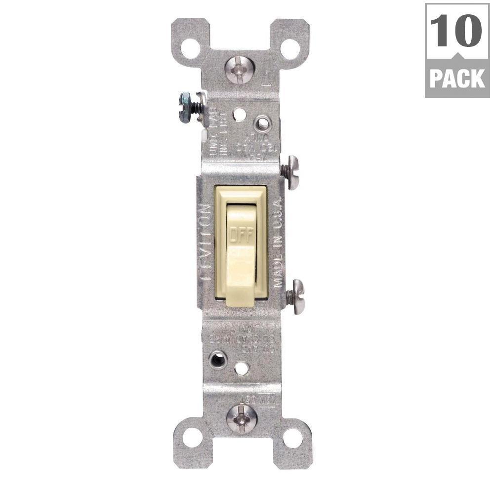 The Leviton 15 Amp Single-Pole Switches (10-Pack) are an excellent choice for demanding residential applications. The switches are made of durable thermoplastic with an ivory finish and are impact resistant for long life and the toggles provide quiet and reliable mechanical action. Achieve a speedy installation by using a combination of side wiring and Quick wire push-in wiring.