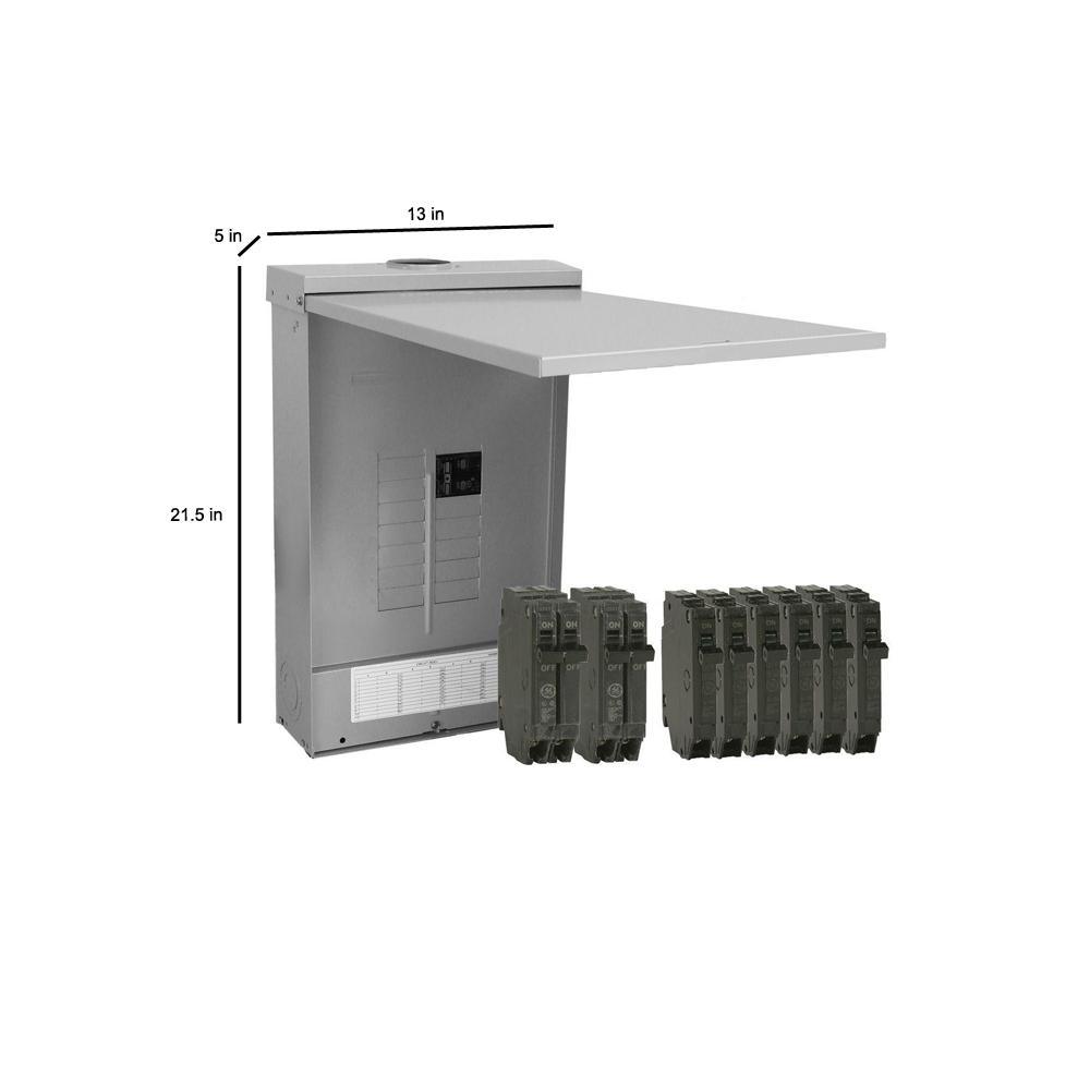 This value kit includes 6 20 AMP Single-Pole, 1 30 AMP Double-Pole, 1 50 AMP Double-Pole THQP 1/2" Circuit Breakers. The load center includes a sturdy tin-plated copper buss bar and a galvanized box for increased durability and reliability. The one-piece interior removes and re-installs easily. Outdoor NEMA 3R enclosure. This load center is UL listed and ANSI Certified.