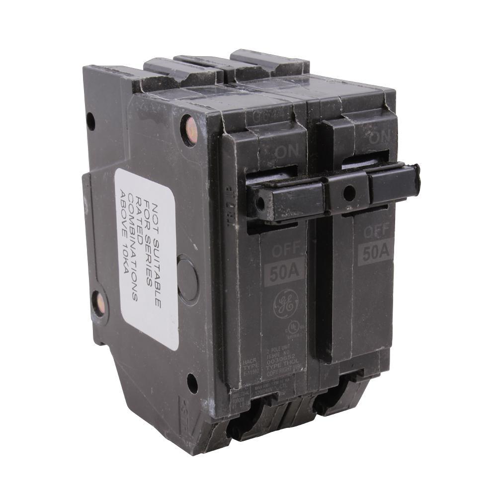 The GE Q-Line 50 Amp 2 in. Double-Pole Circuit Breaker has a dedicated calibration screw which is cemented to prevent shifting. The attached screw creates a stable calibration for optimum performance. The unit has tin-plated copper stabs to create reliable, permanent and corrosion-resistant connections. The case is made of heat-resistant thermoset for stability and structural integrity.
