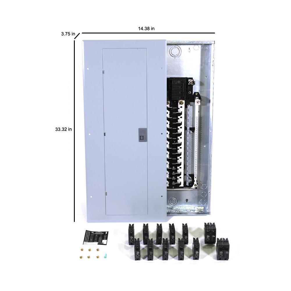 This value kit includes 10 20 Amp Single-Pole, 1 30 Amp Double-Pole, 1 50 Amp Double-Pole THQL 1 in. Circuit Breakers. The load center includes a sturdy tin-plated copper buss bar and a galvanized box for increased durability and reliability. The 1-piece interior removes and re-installs easily. Indoor NEMA 1 enclosure with combination surface/flush front. This load center is UL listed and ANSI Certified.