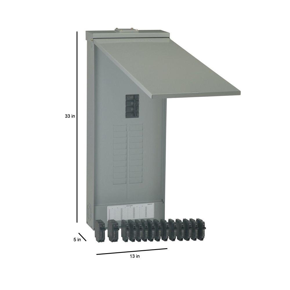 This value kit includes 12 20 Amp Single-Pole, 1 30 Amp Double-Pole, 1 50 Amp Double-Pole THQP 1/2 in. Circuit Breakers. The load center includes a sturdy tin-plated copper buss bar and a galvanized box for increased durability and reliability. The one-piece interior removes and re-installs easily. Outdoor NEMA 3R enclosure. This load center is UL listed and ANSI Certified.