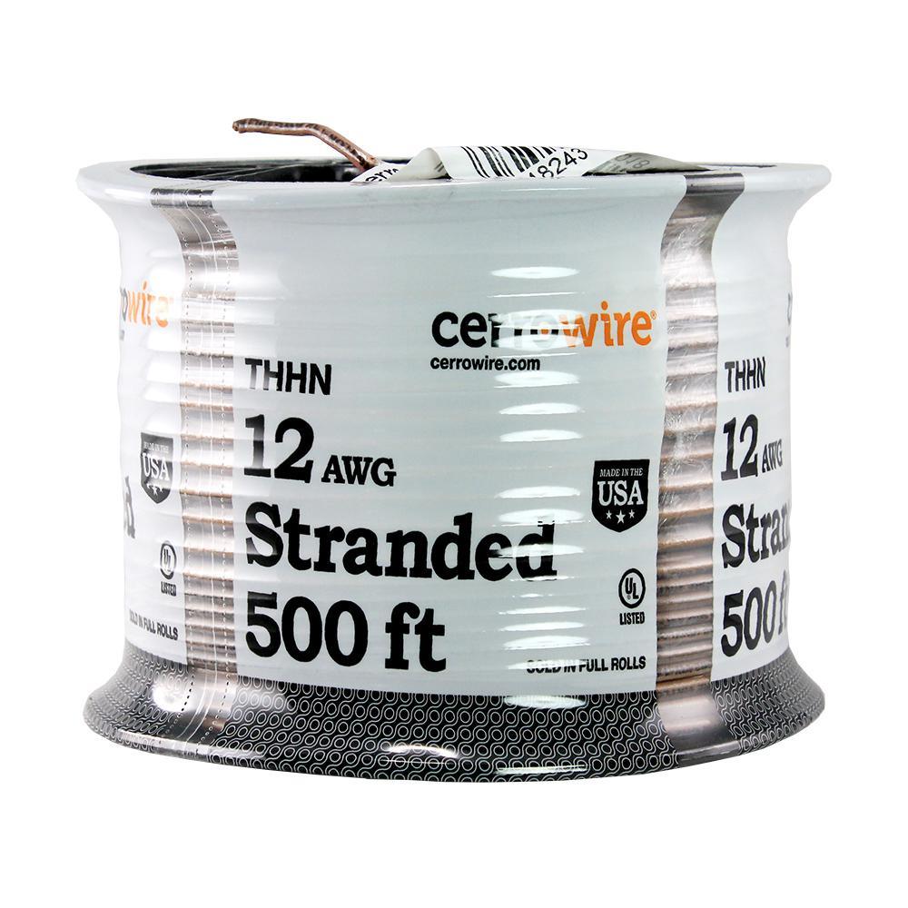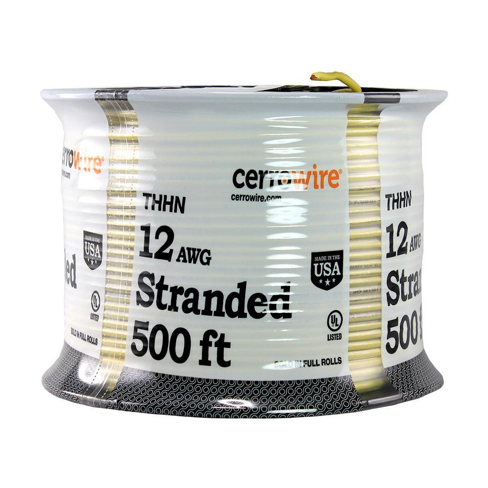 This white 500 ft. 12/19 Stranded THHN Wire is UL and CSA listed for safety. Constructed of durable copper, its 19 conductor strands are insulated with PVC and jacketed with nylon for effective, safe performance. Wire is used in commercial and industrial applications as specified in the NEC.