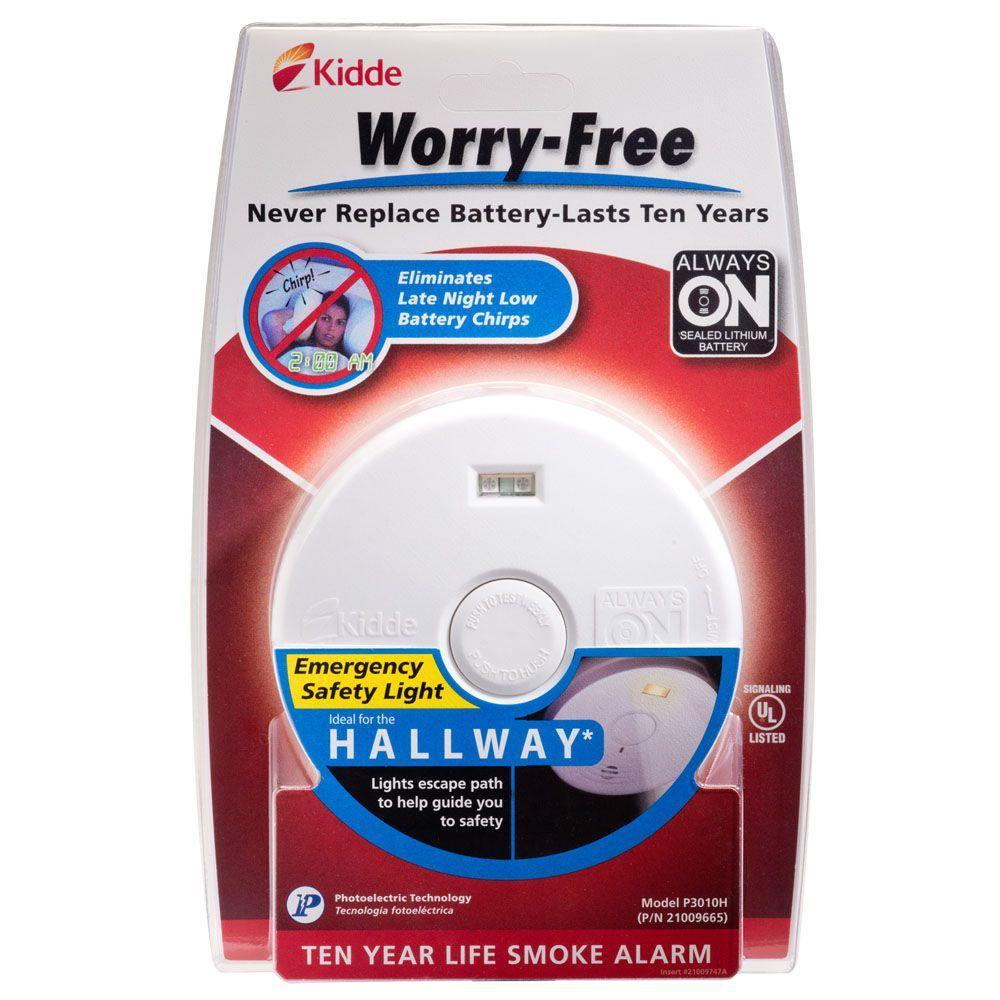 This Kidde 10-Year Worry Free smoke detector is easy to install and alerts your family when fire or smoke is detected in your home. Smoke alarms should be placed outside each sleeping area and on every level of the home. This alarm is powered by a 10-Year sealed-in, non-replaceable lithium ion battery. No hardwire installation required and no need to change the batteries over the 10-year life of the alarm. Simply replace the entire unit after 10 years.