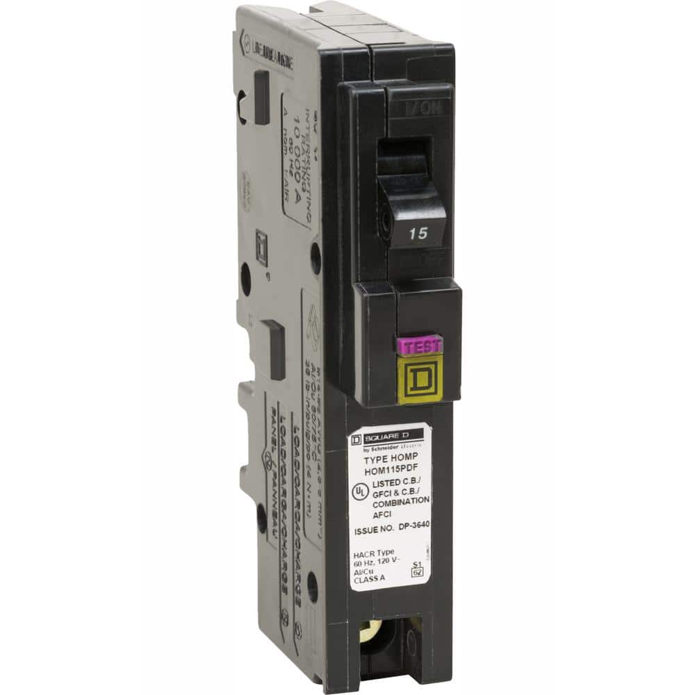 Square D Homeline 15 Amp Single-Pole Plug-On Neutral Dual Function CAFCI/GFCI Circuit Breaker, HOM115PDFC