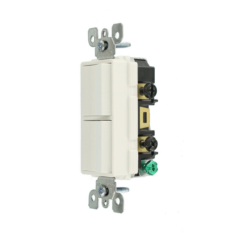 Leviton's Decora Combination Switch is the perfect choice for any area in a home. It’s simple, functional design allows you to save space wherever the switch is installed. Beautifully styled and part of the notable Decora line, the switch comes in a variety of popular colors. Its impact-resistant exterior ensures damage protection and a long service life.