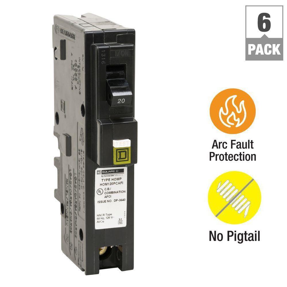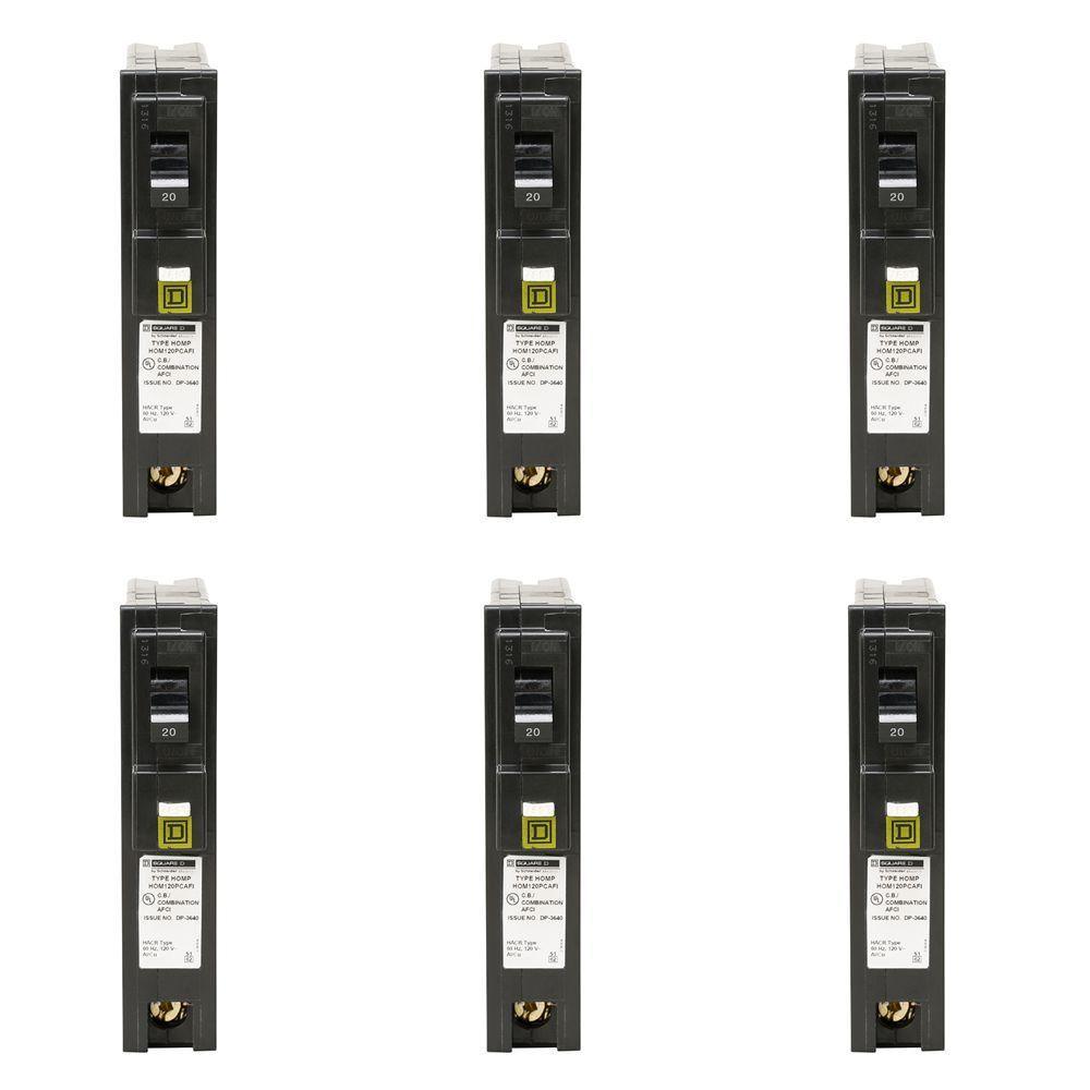 Homeline 20 Amp Single-Pole Plug-On Neutral Combination Arc Fault Circuit Breaker (6-Pack)