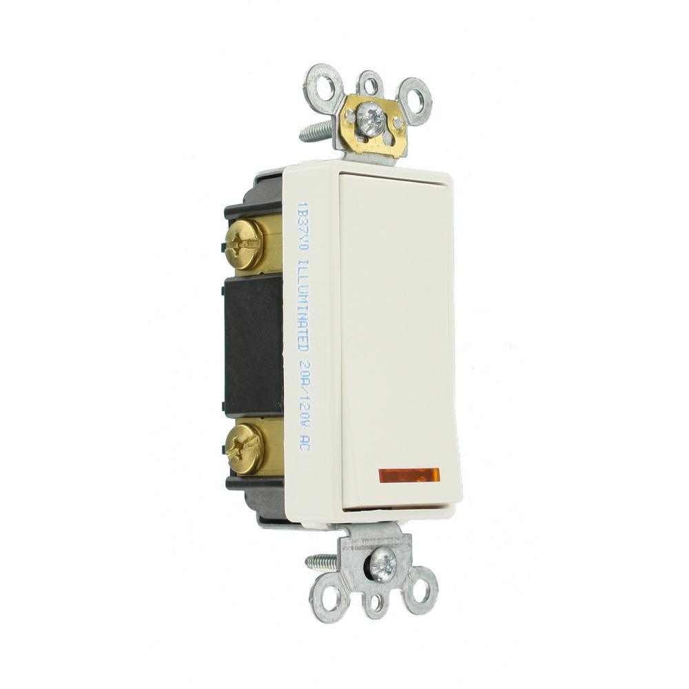 20 Amp Decora Plus Commercial Grade 3-Way Lighted Rocker Switch with Pilot Light, White