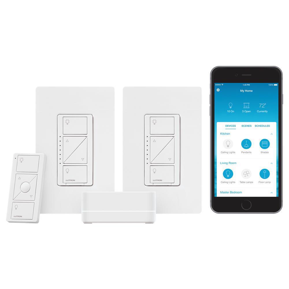 • KIT INCLUDES: (1) Caseta smart bridge, (2) Caseta dimmer switches with wallplates and (1) Pico remote control