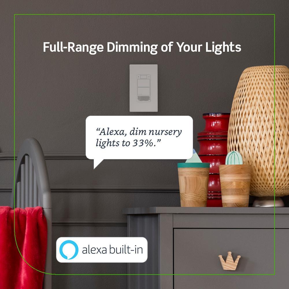 • Ask Alexa: with Alexa built-in you can ask your Leviton voice dimmer to dim and brighten lights, listen to the news, play music, get the weather, control smart home devices and more