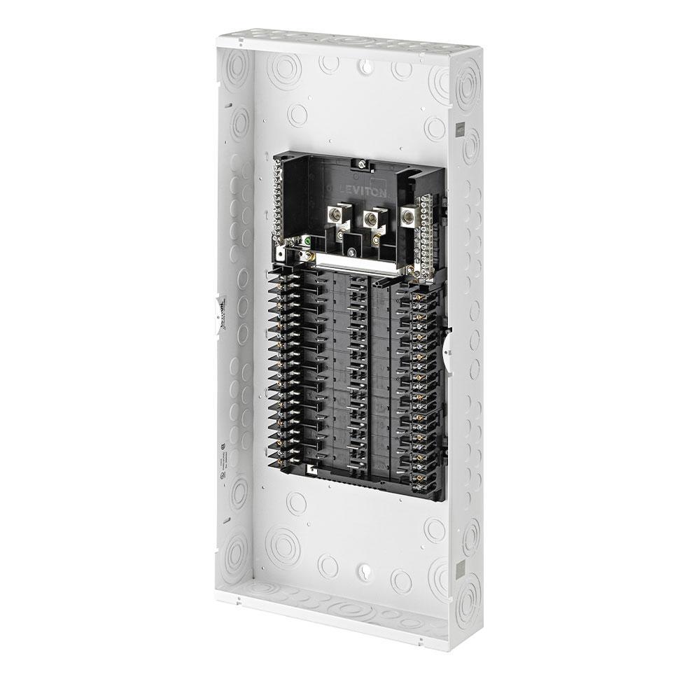 Leviton Indoor Load Centers are easy to install and feature a white enclosure for a modern, appealing unit. All hot and neutral wires terminate at custom lugs in the panel, not at the circuit breaker, so the entire panel can be wired at rough-in without circuit breakers installed. Leaving the option of having the circuit breakers easily plugged-on at final installation. An optional observation window in the cover allows at-a-glance operating status of all the circuit breakers (sold separately).