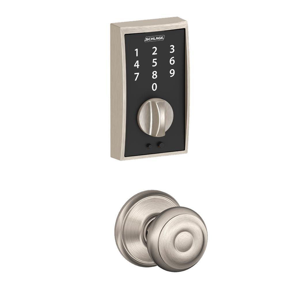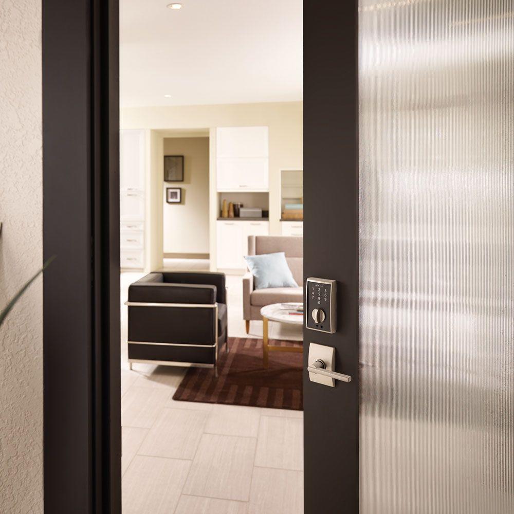 With the Schlage Century Matte Black Touch Electronic Deadbolt and Georgian Passage Knob, there's no key to lose, no re-keying or cutting new keys - no keys at all, thanks to our cylinder-free design. You can finally go for a run or take the dog for a walk without juggling keys or stuffing them in your sock. All in a slim profile and stylish trim that pairs perfectly with interior hardware. The Century trim is chic with a delicate, slightly curved shape. The striking appearance of the Matte Black finish creates an elegant look that's sure to be noticed in any style setting. Plus, it's been designed and tested with strength and durability in mind.