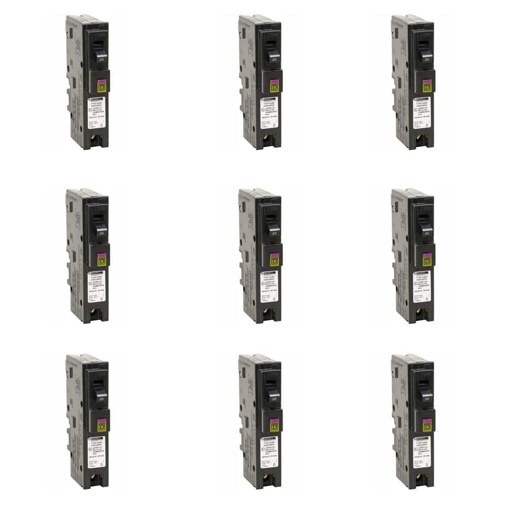Square D Homeline 20 Amp Single-Pole Plug-On Neutral Dual Function CAFCI/GFCI Circuit Breaker, 9-Pack