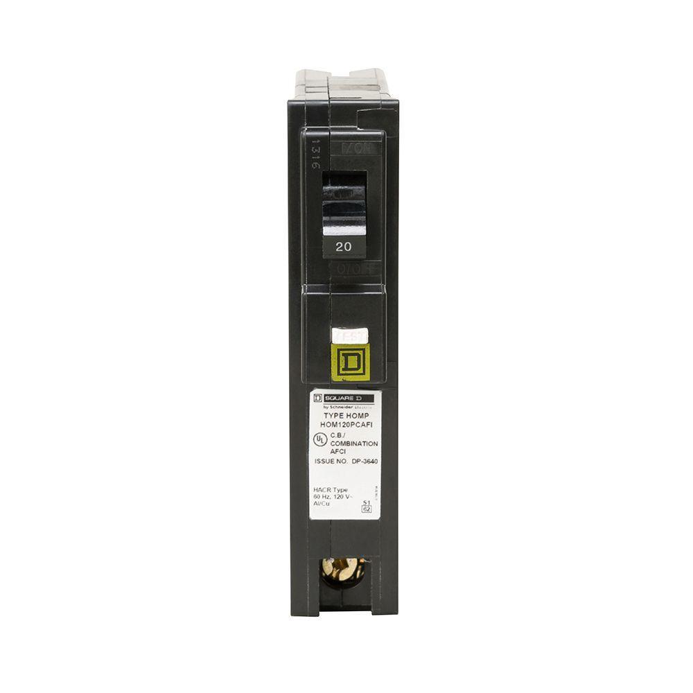 The Square D Homeline 20 Amp 1-pole Plug-On-Neutral Combination Arc Fault Circuit Interrupters (CAFCI/CAFI) helps keep people and property safe from the effects of dangerous arcing. These arcs typically occur out of sight, inside walls or electrical devices, day or night. Designed for reliability, the Homeline Plug-on Neutral CAFI Circuit Breaker connects directly to the neutral bar, providing a time and labor-saving installation. Several advantages from the Plug-on Neutral design are fewer connections which lead to faster installation and an innovative neutral clip eliminates pigtails which in turn frees gutter space. This breaker is compatible with Square D's Homeline Plug-On Neutral electrical panels with available space for a 1-pole breaker. A total of 12 spaces required for entire offering. The Square D CAFI circuit breaker uses a state-of-the-art Arc Detection Technology to continuously monitor the circuit and quickly turn-off the power (trip) when a dangerous condition is detected. Best of all, this technology is combined with Square Ds robust and reliable short circuit/overload protection systems in a small, compact package. Engineered for Value and built for Quality, the market leading Square D brand Homeline Combination Arc Fault Circuit Interrupter combine time-tested performance with state-of-the-art technology to provide one of the safest circuit breakers available today. This breaker is also designed for residential and single phase commercial uses.
