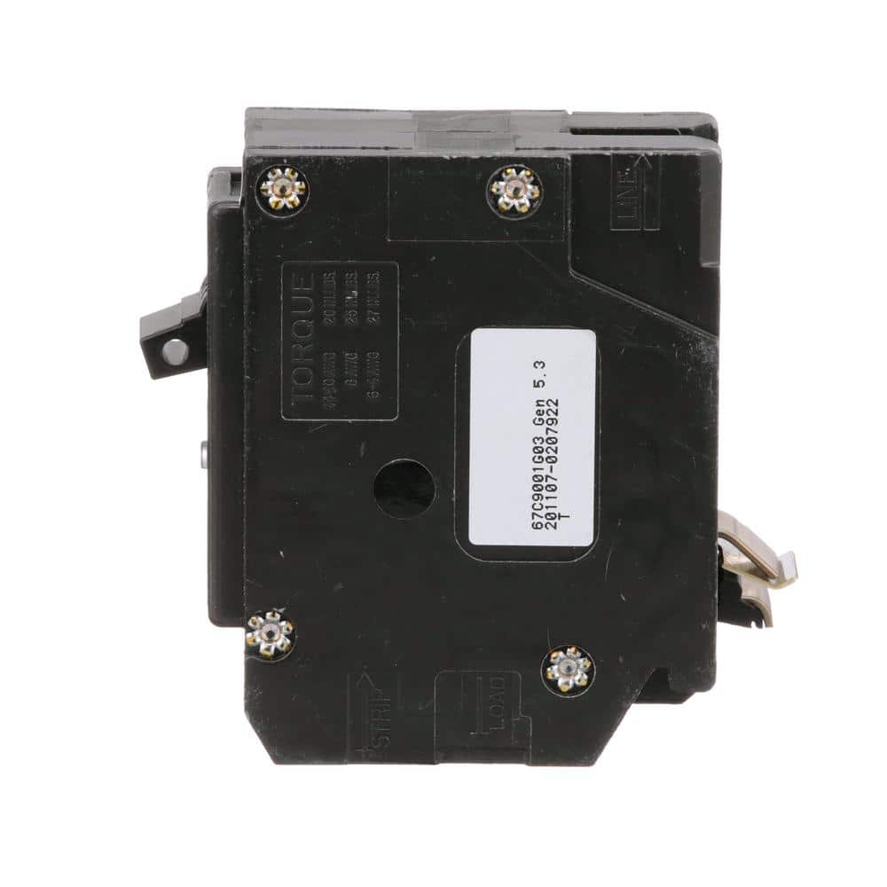 A: The breaker features a plug-on design, which allows for straightforward installation in compatible load centers.