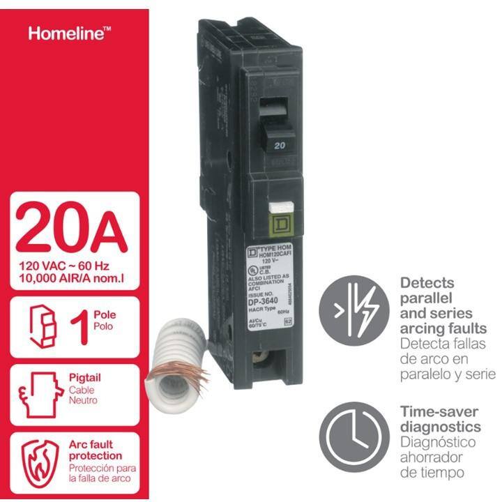 Square D Homeline 20 Amp Single-Pole Combination Arc Fault Circuit Breaker(HOM120CAFIC)