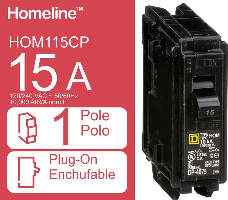 The Square D by Schneider Electric Homeline 15 Amp One-Pole Circuit Breaker is used for overload and short-circuit protection of your electrical system. This breaker is compatible with Homeline load centers and CSED devices.