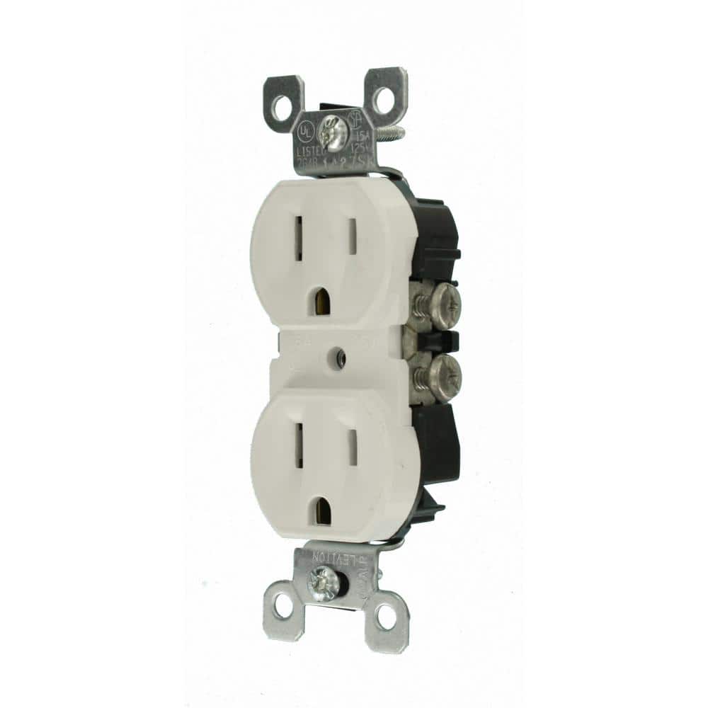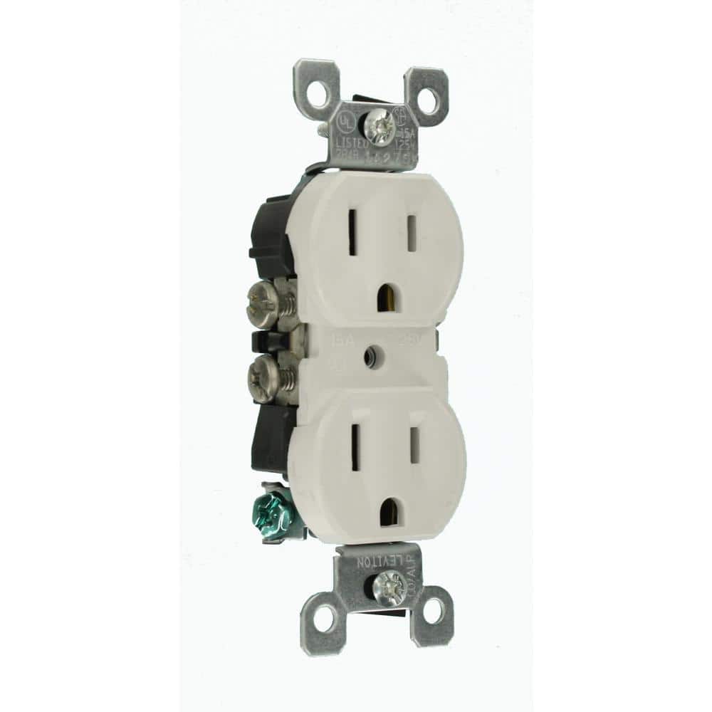 Leviton 15 Amp CO/ALR Duplex Outlet, 125V, White (Model 12650-W)