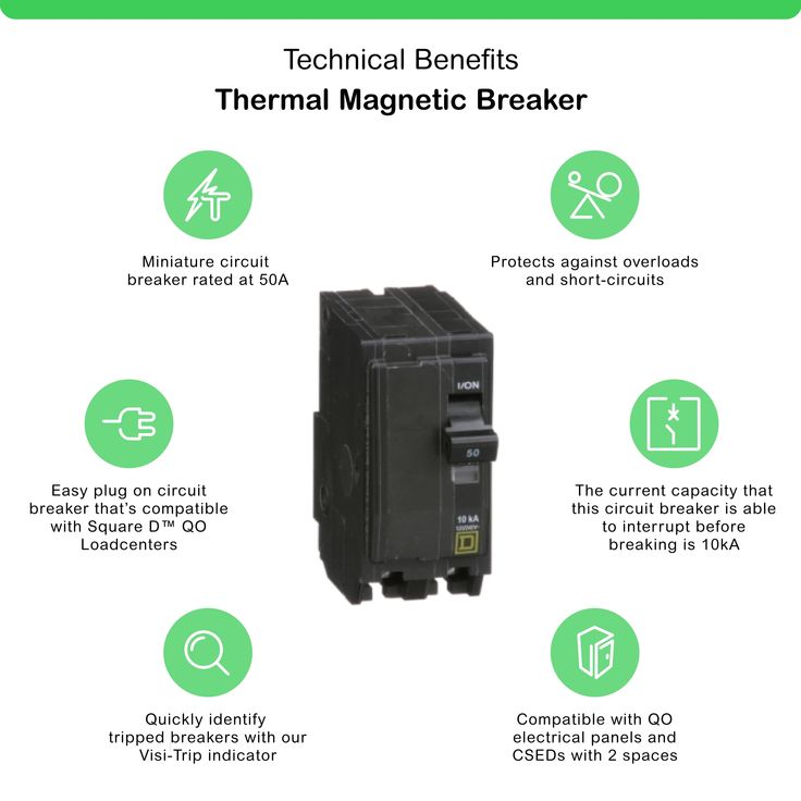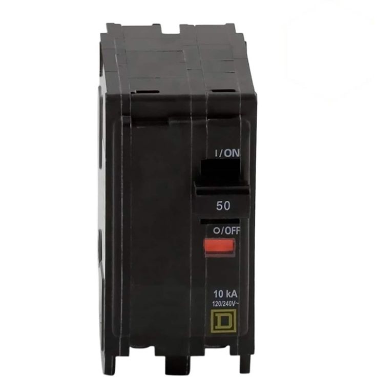 The Square D by Schneider Electric QO 50 Amp Two-Pole Circuit Breaker is intended for overload and short-circuit protection of your electrical system. The ANSI-certified and UL-listed unit is rated for 120/240 VAC and 10,000 AIR. All QO circuit breakers are equipped with the exclusive Visi-Trip indicator. When a QO Visi-Trip circuit breaker trips, the handle snaps to a midpoint position between in OFF and in ON and a highly visible, red indicator easily identifies the tripped breaker. This enables you to easily distinguish which breaker has tripped in a load center that may contain up to 42 different circuit breakers. QO circuit breakers have features no other manufacturer can offer. They come in many different sizes and can meet the needs of virtually every function in your home or business. These types of quality, industry exclusive products keep the Square D brand ahead of the competition and are builders' and electrical contractors' first choice in electrical protection.