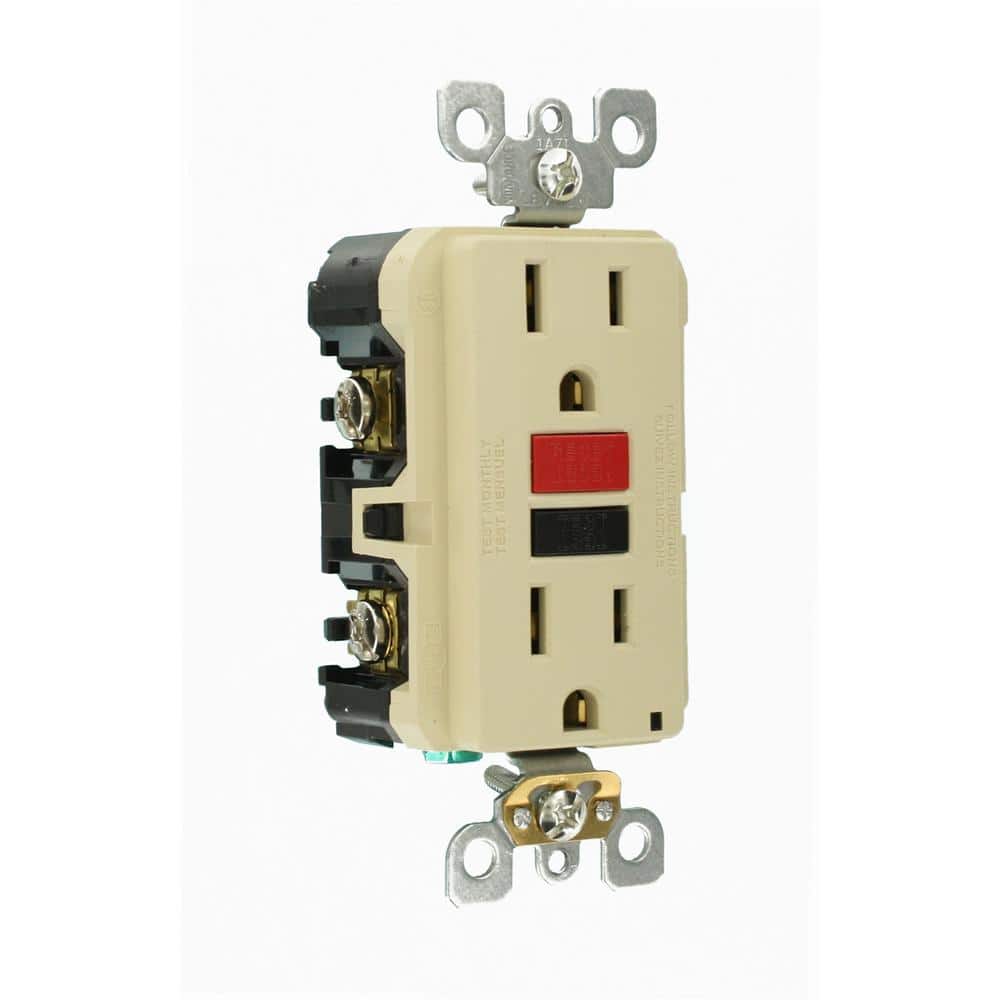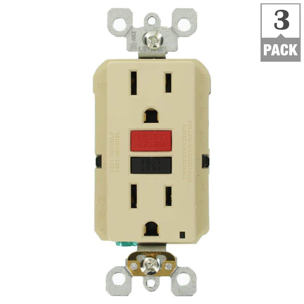 Leviton 15 Amp Self-Test SmartlockPro Slim Duplex GFCI Outlet, Ivory (3-Pack)