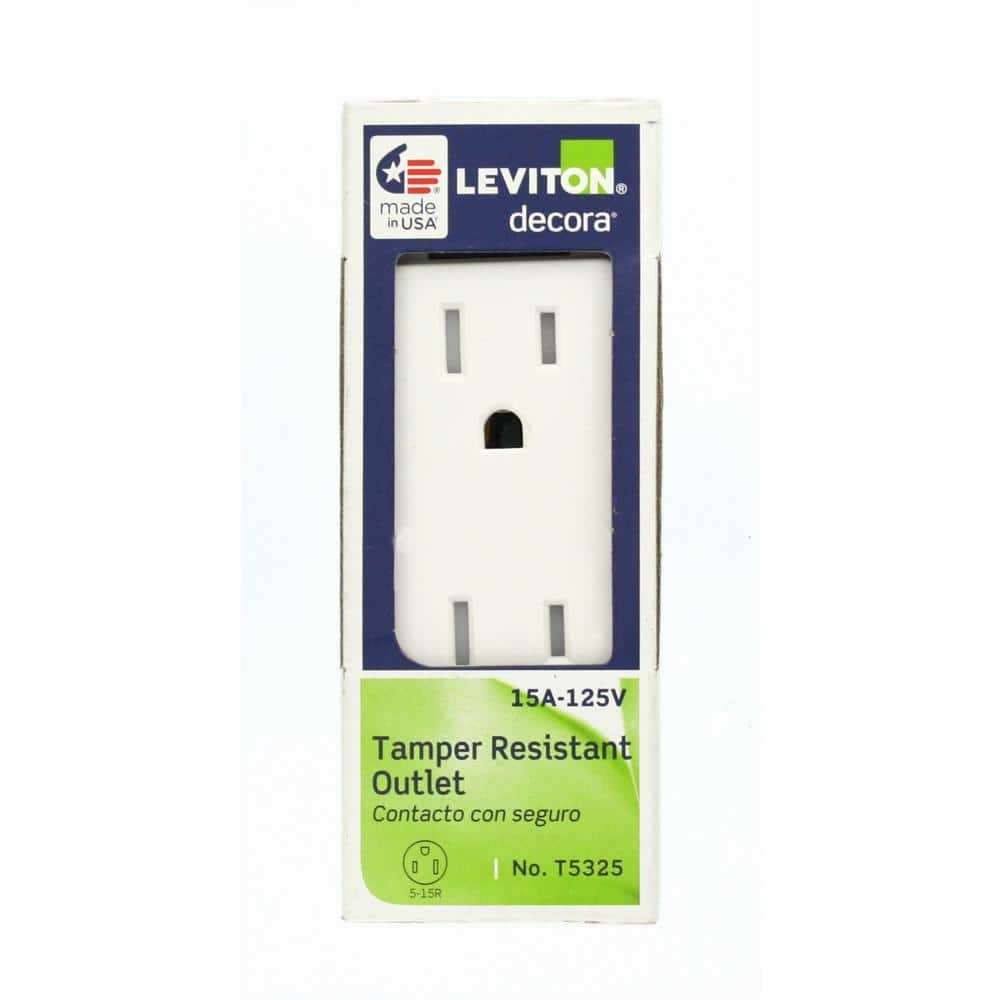 Leviton Decora 15 Amp Tamper-Resistant Duplex Outlet, White