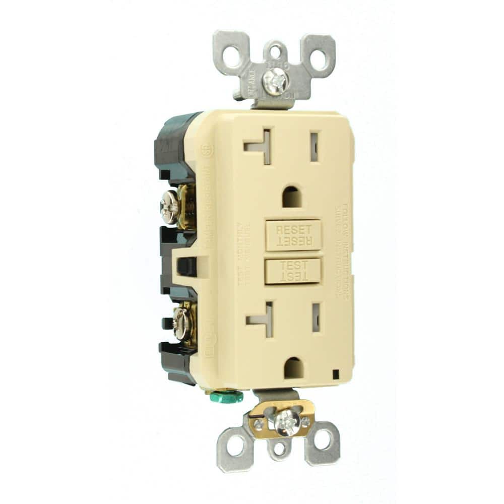 Leviton 20 Amp 125-Volt Duplex SmarTest Self-Test SmartlockPro Tamper-Resistant GFCI Outlet, Ivory (GFTR2-KI / R91-GFTR2-0KI)