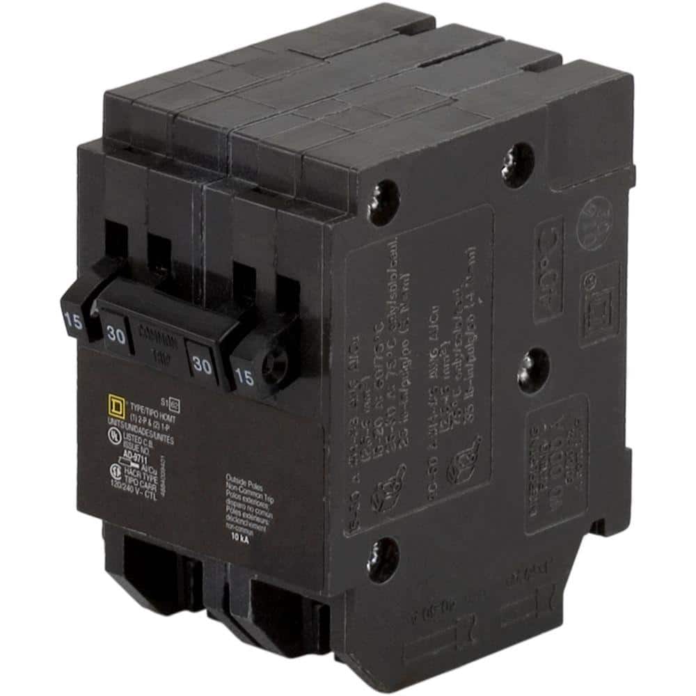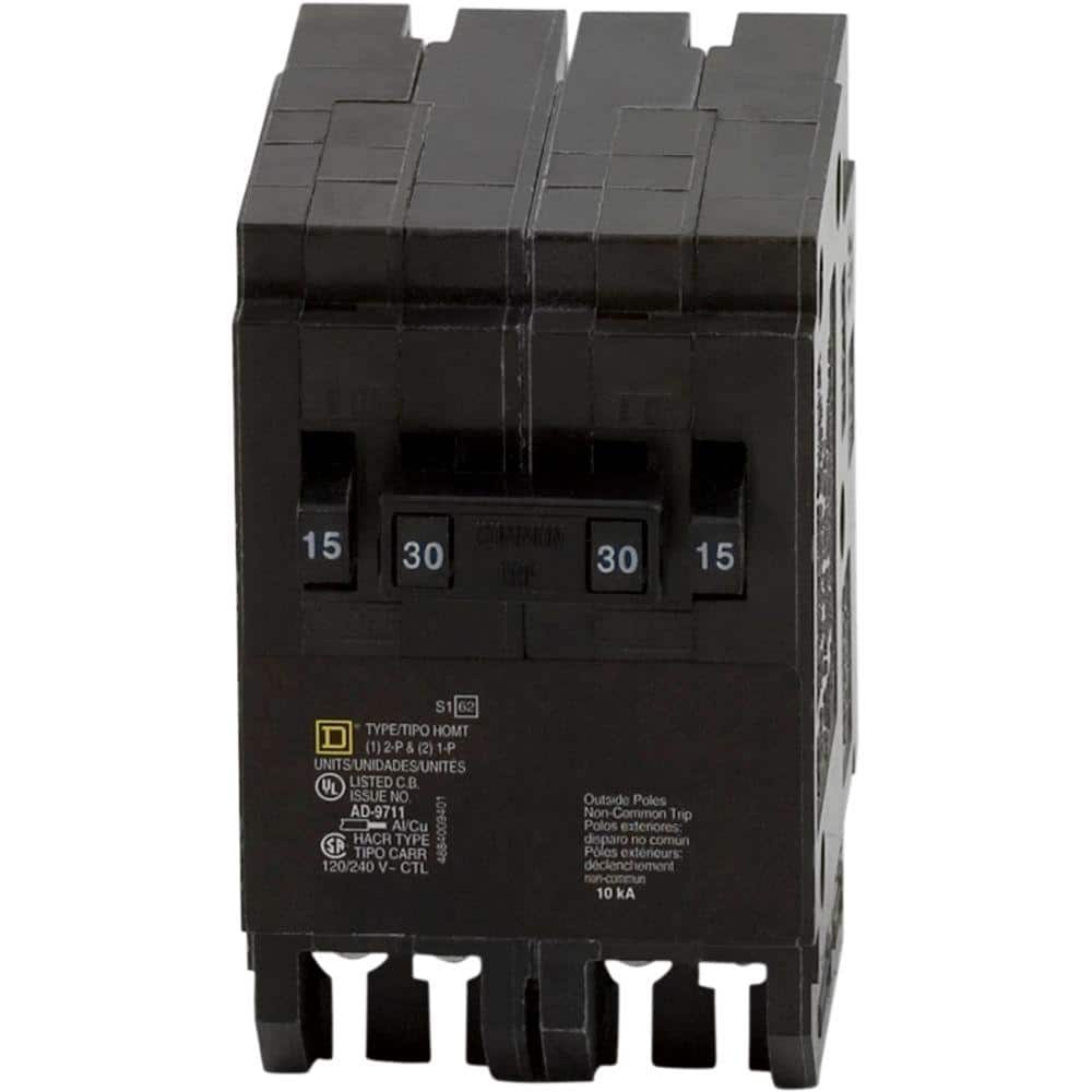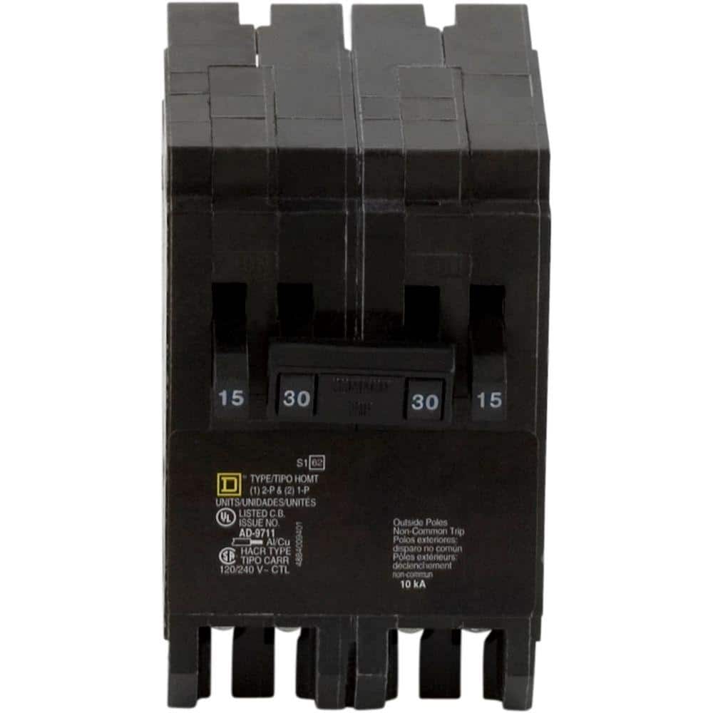 Square D Homeline 2-15 Amp Single-Pole 1-30 Amp 2-Pole Quad Tandem Circuit Breaker