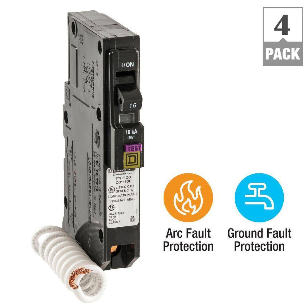 Square D QO 15 Amp Single-Pole Dual Function (CAFCI and GFCI) Circuit Breaker (4-Pack)