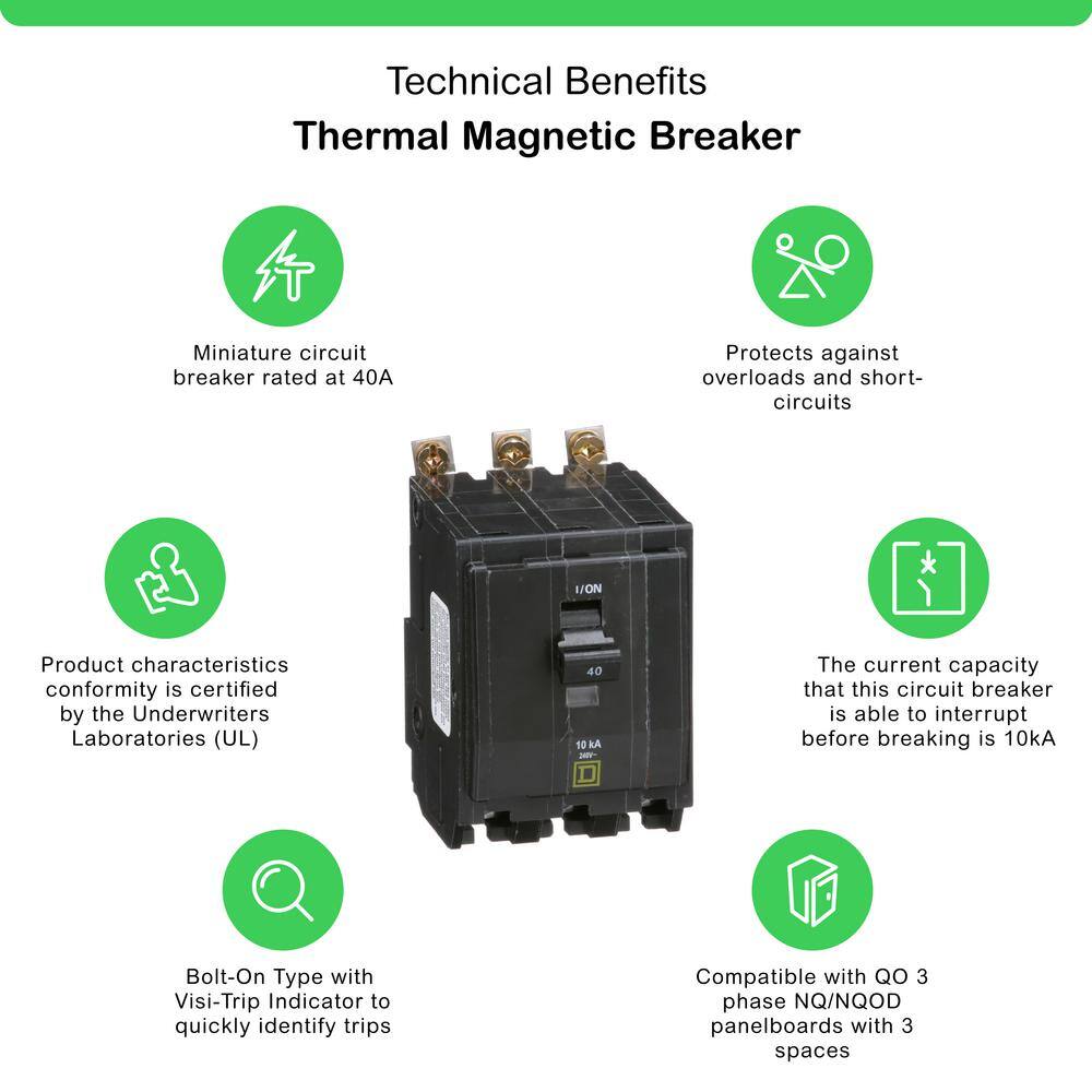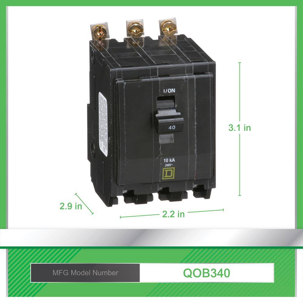 Square D QO 40 Amp 3-Pole Bolt-On Circuit Breaker